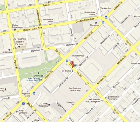 We are located the Odd Fellows Building at 7th and Market (right by the Civic Center Bart/Muni in San Francisco) .